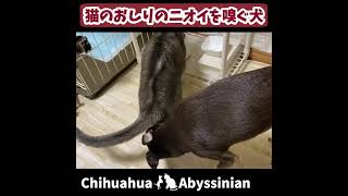 (アビ&チワワ) 猫のお尻のニオイを嗅ぐ犬 #shorts